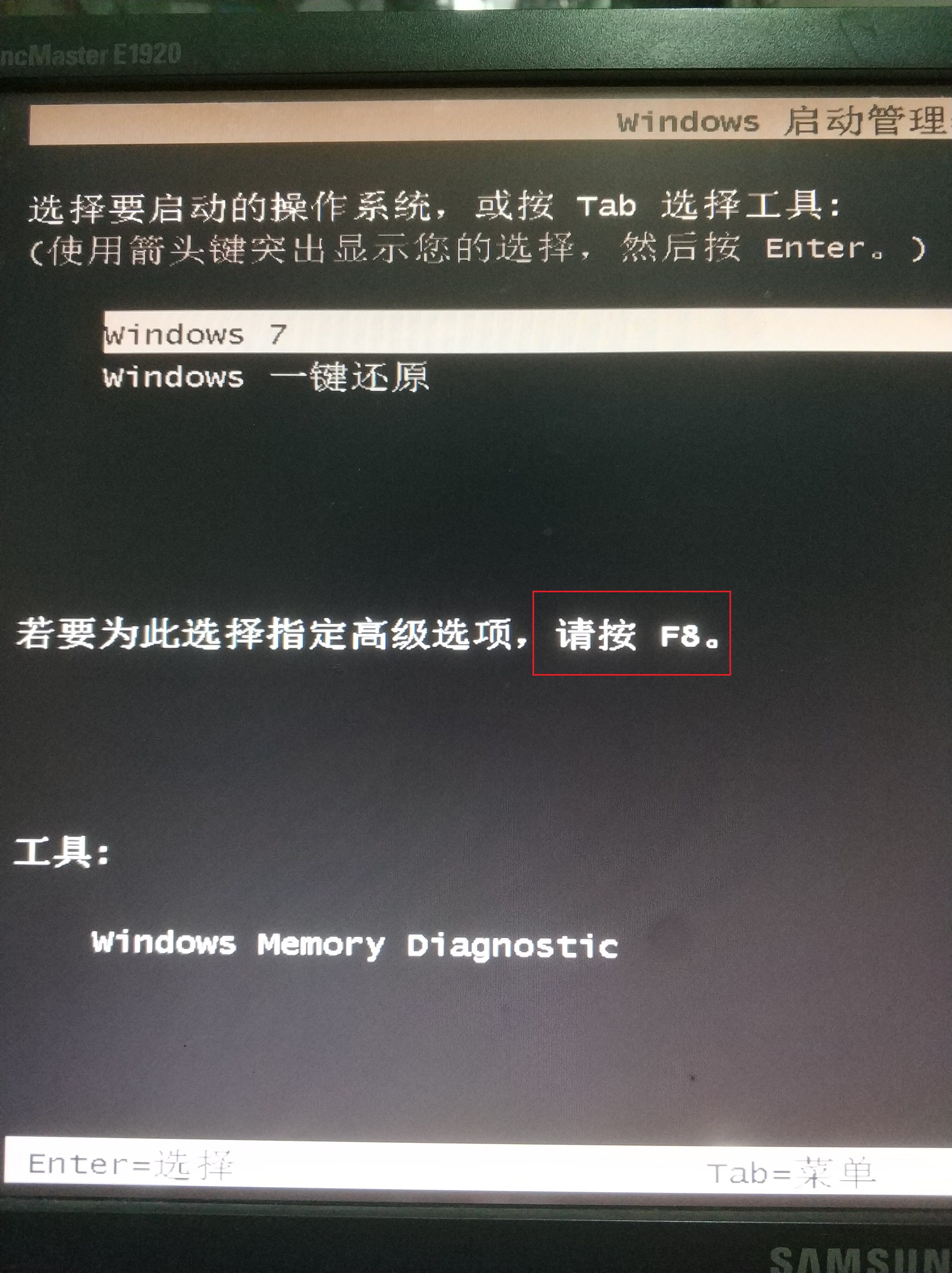 2、接下来,会跳出以下画面,按“F8”键条状至指定高级选项。如图所示: