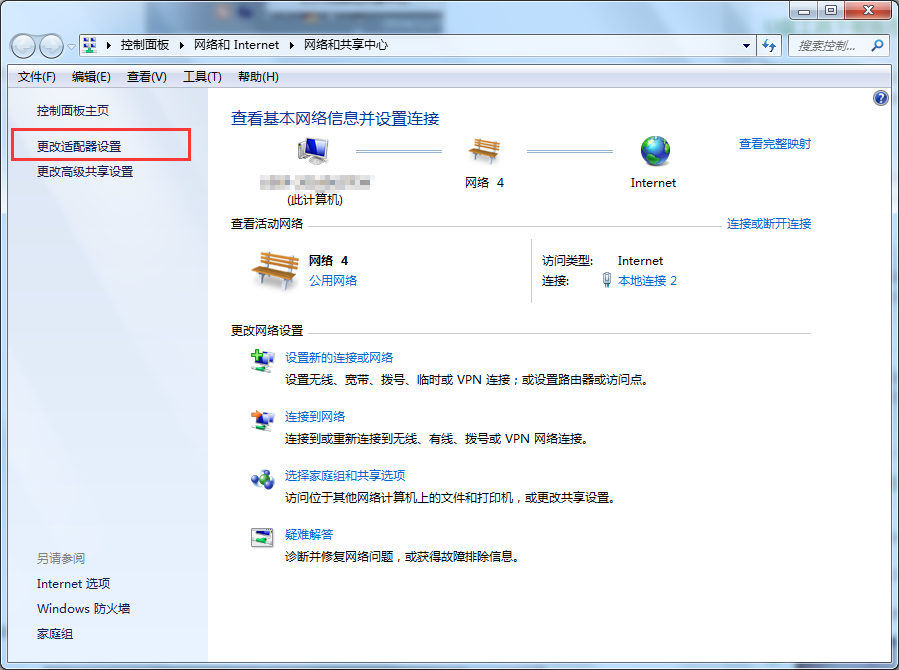 2、在打开的网络与共享中心窗口,点击左侧的“更改适配器设置”。如图所示: