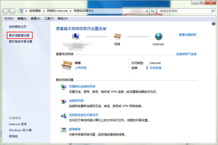 2、打开网络和共享中心窗口后,在窗口左侧选择“更改适配器设置”选项。如图所示: