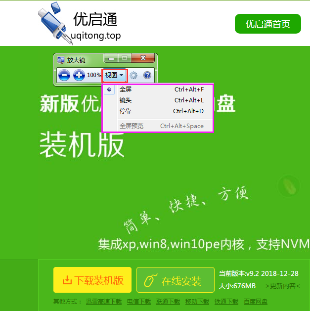 5、单击放大镜窗口的“视图”选项可以切换放大镜的显示情况。如图所示: