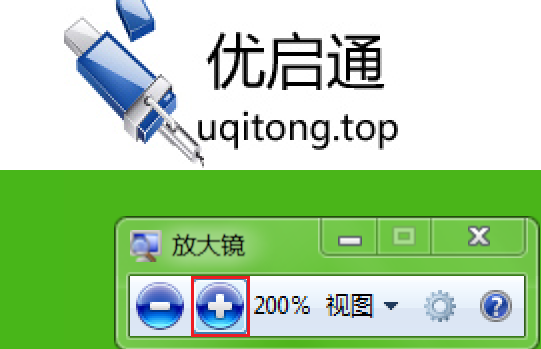 4、在放大镜窗口中我们可以看到“+”和“-”的图标,单击既可放大或缩小图片或文字大小。如图所示: