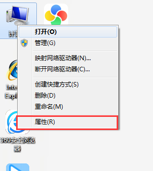 1、首先,将鼠标置于”计算机“图标上,右击鼠标选择打开”属性“。如图所示: