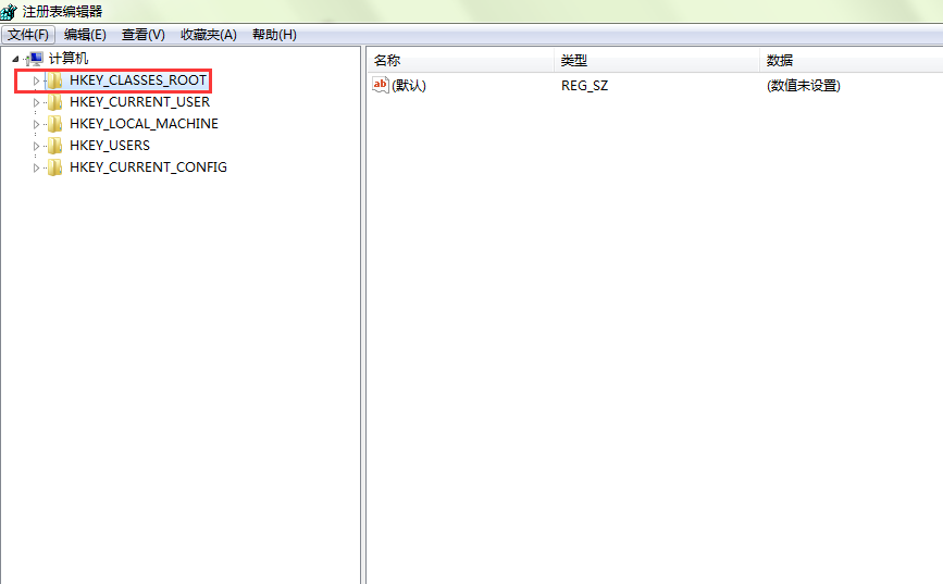 2、打开“注册表编辑器”后,选择左侧的“HKEY_CLASSES_ROOT”根键。如图所示: