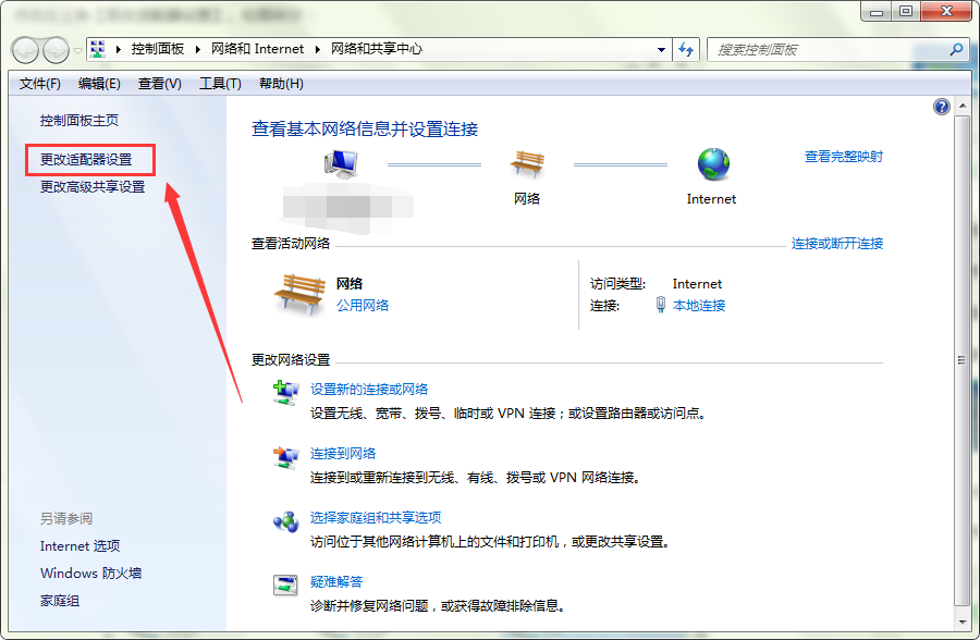 3、打开“网络和共享中心”窗口后,在窗口左侧选择打开“更改适配器设置”。如图所示: