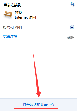 2、点击“打开网络和共享中心”。如图所示: