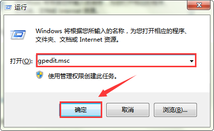 1、按“WIN”+“R”组合键,输入“gpedit.msc”,然后点击确定,进入“本地组策略编辑器”。如图所示: