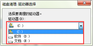 2、打开磁盘清理窗口后,您可以点击下拉窗口选择您需要清理的磁盘。如图所示: