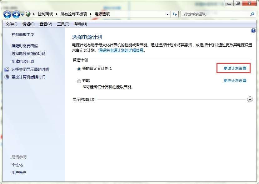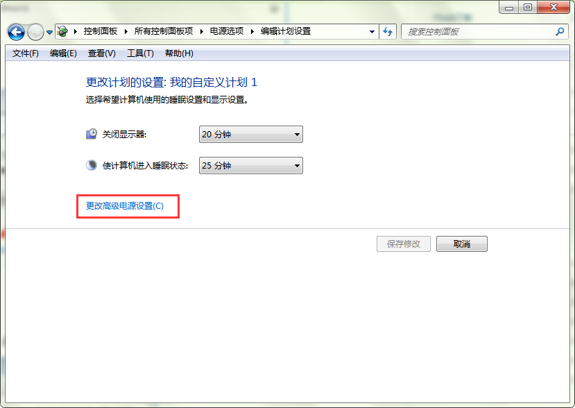 3、接下来,在打开的”电源选项“窗口,点击”更改计划设置“——”更改高级电源设置“。如图所示: