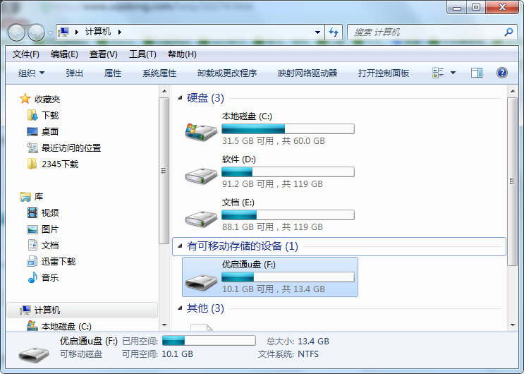1、将U盘插入电脑,使其被读取;
