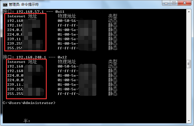 5、若想要查看局域网中其他计算机IP地址,则输入“arp -a”命令即可,如图所示: