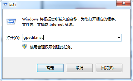 1、按“win+R”键打开策略组编辑器,在跳出的运行窗口内输入“gpedit.msc”命令。如图所示: