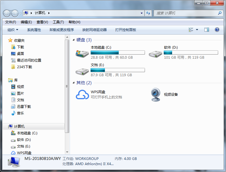 1、点击桌面的“计算机”图标,就如|“计算机”界面。如图所示:
