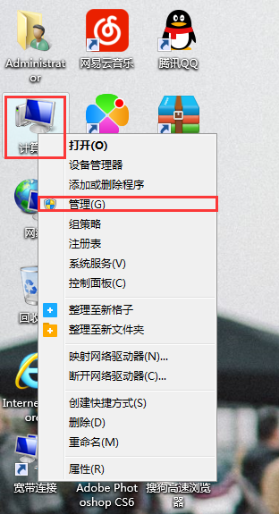 1、在电脑桌面找到“计算机”图标,右击“计算机”图标选择“管理”选项。如图所示: