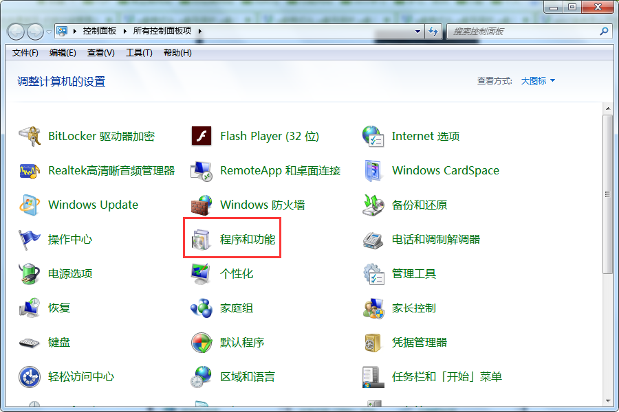 2、在“所有控制面板项”页面中找到并打开“程序和功能”。如图所示: