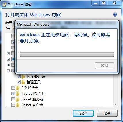 5、以上步骤设置完成后会弹出修改进度条窗口,待进度条跳完后即更改成功后会自动关掉窗口。到此NFS客户端服务就开启了。如图所示: