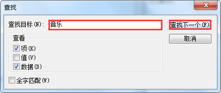 3、接下来,在打开的“查找”窗口,“查找目标”处,输入您要查找的内容,点击“查找下一个”即可。如图所示: