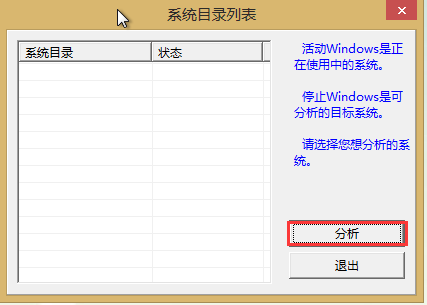4、点开后弹出一个系统目录列表,可以看到一个windows系统目录(如果有多个系统的时候这里也会显示出来)单击选择需要进行检测修复的系统,点击“分析”。如下图所示: