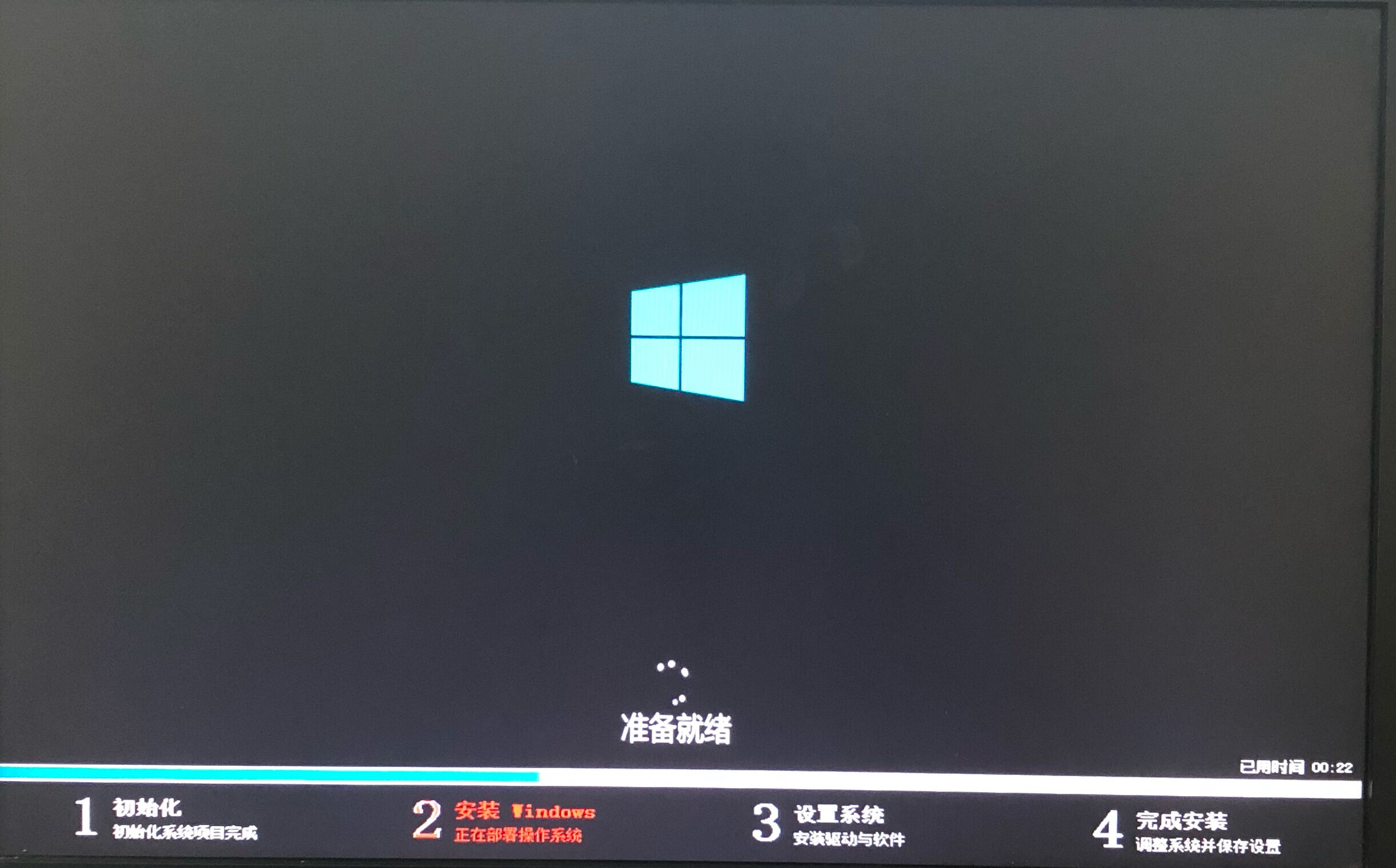 第七步:重启过程中系统将进行内部部署,此过程约需3~4min,耐心等待完成即可进入桌面: