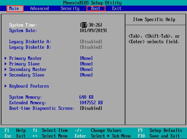 1、首先,将U盘插入电脑USB接口。然后开启电脑,按快捷键进入BIOS设置。(一般电脑主板的快捷键为F12,有些则不是。点击下面网址可以查询电脑快捷键:)。将选项卡从“Main”切换至“Boot”。如图所示: