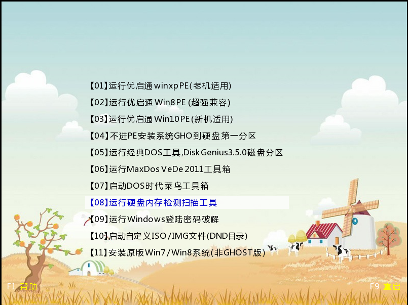 第二步:选择【08】运行硬盘内存检测扫描工具,按Enter键确定;