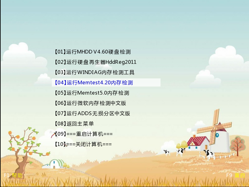 第三步:选择【04】运行Memtest4.20内存检测,按Enter键确定,如图所示;