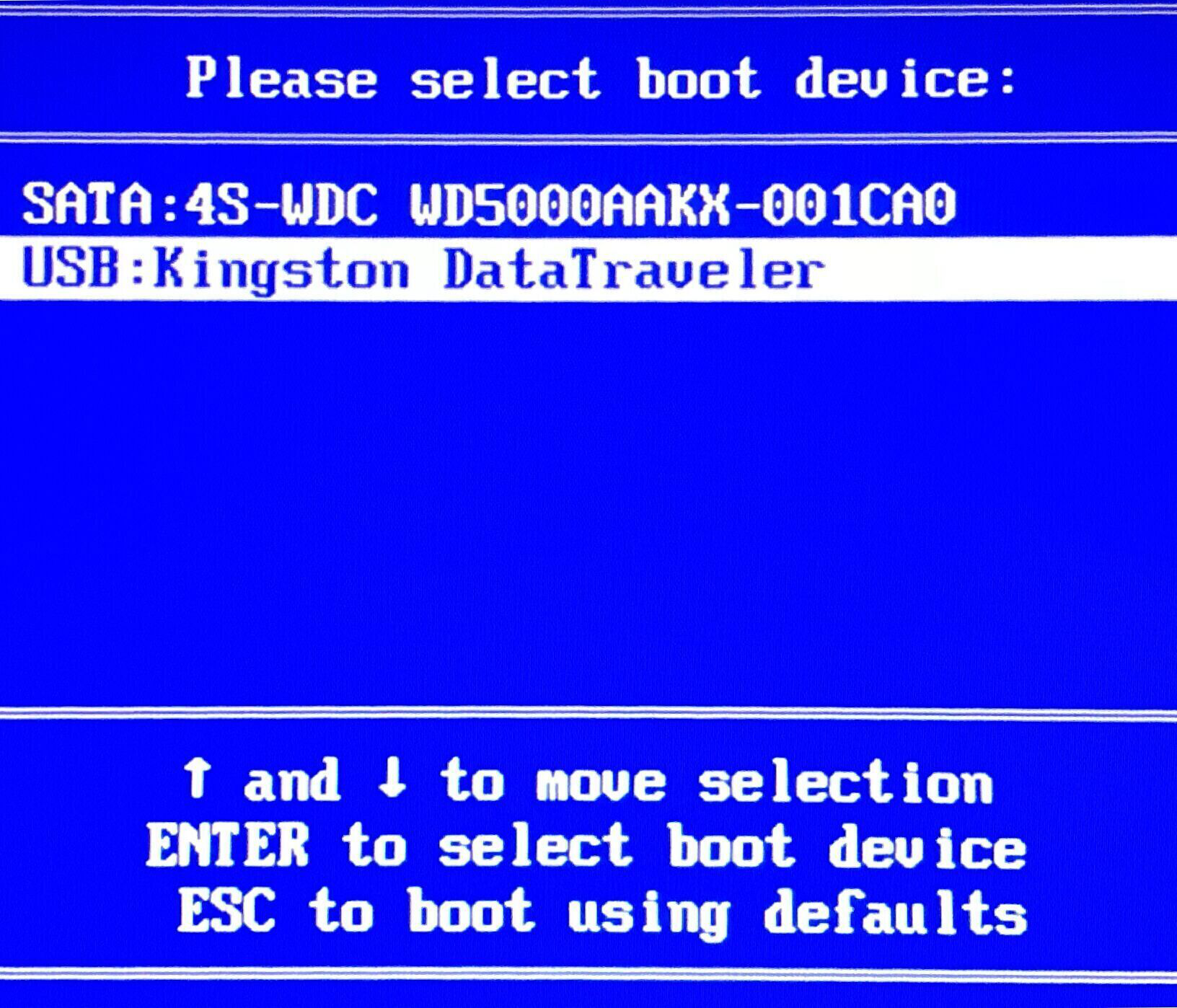 1、将准备好的优启通U盘启动盘插在电脑USB接口上,重启电脑,在出现开机画面时连续按U盘启动快捷键,之后会弹出窗口如图所示,找到U盘(一般在几个选项中其中一项是有关USB或者您所插U盘的品牌名称,则是要找的U盘),按“↑↓”选择到U盘再按回车键确认,如图所示: