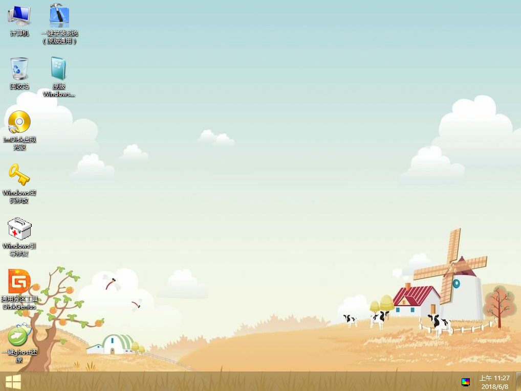 7、重启过程中系统将进行内部部署,此过程约需3~4min,耐心等待完成即可进入桌面,如图所示: