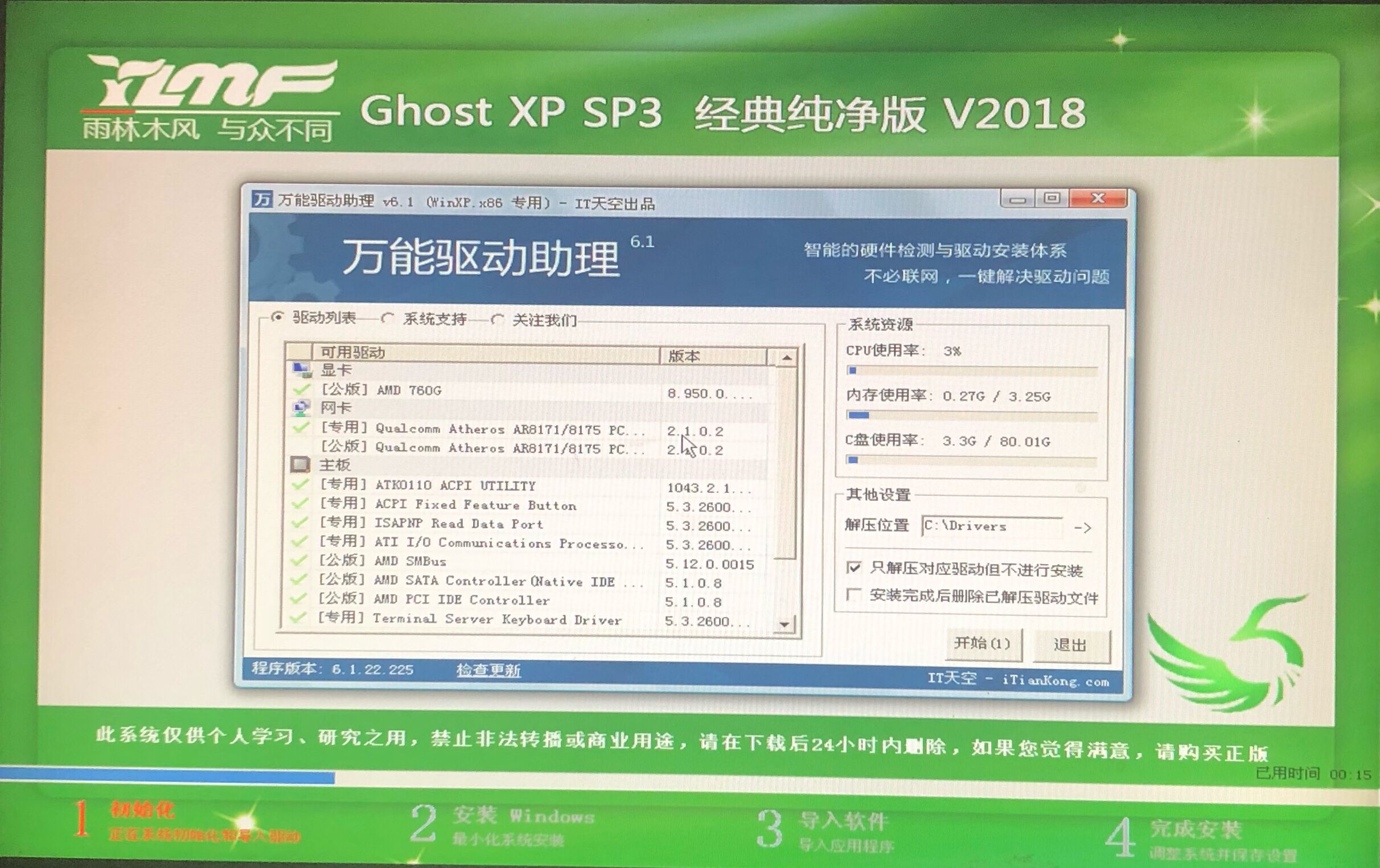第六步:此时弹出GHOST还原界面,此过程约需2~3min,耐心等待完成: