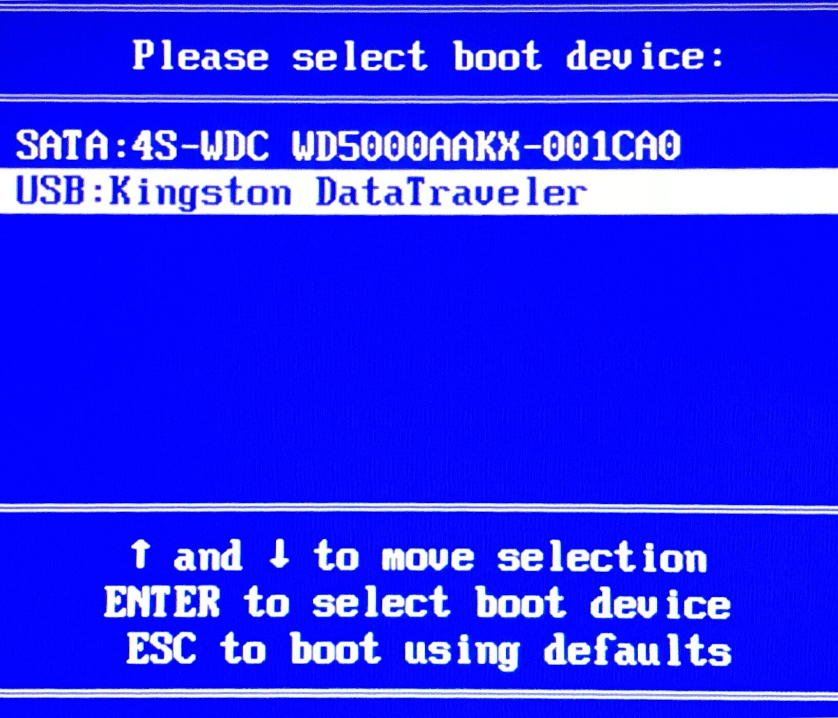 第一步:将准备好的优启通U盘启动盘插在电脑USB接口上,重启电脑,在出现开机画面时连续按U盘启动快捷键,之后会弹出窗口如图所示,找到U盘(一般在几个选项中其中一项是有关USB或者您所插U盘的品牌名称则是要找的U盘),按“↑↓”选择到U盘再按回车键确认: